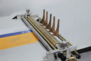 | 制作臺歷架演示 在SK840A書殼機上更換定位擋塊,就可快速批量完成標準臺歷架的制作。 |