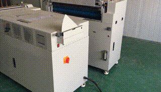 | 蝴蝶裝對裱演示 在書殼機旁配個簡易裝置就可以完成A3尺寸精裝書殼的封面上膠、紙張和紙板裱糊等蝴蝶裝對裱工作。 |