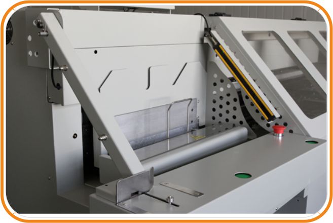 紅外安全裝置 放入書芯后,操作人手部離開檢測區即可自動運行,確保書芯 |